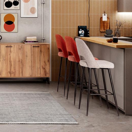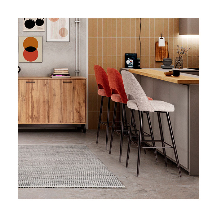 Taburete alto con tres colores de tapizado y patas a elegir.