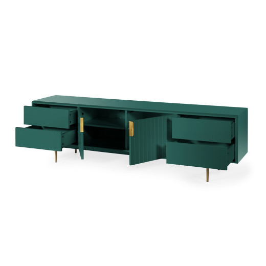 Mueble TV en lacado satinado con 2 puertas y 4 cajoneras.