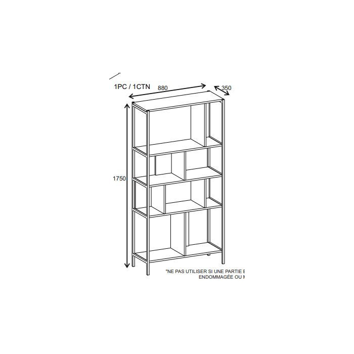 Estantería metálica de 4 niveles en acabado negro y roble.
