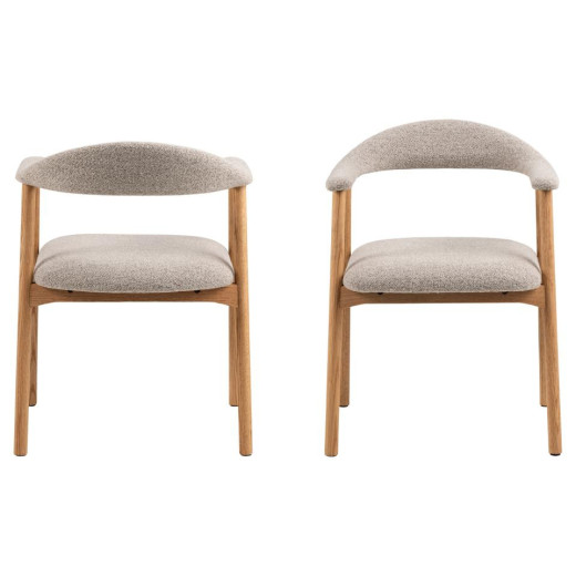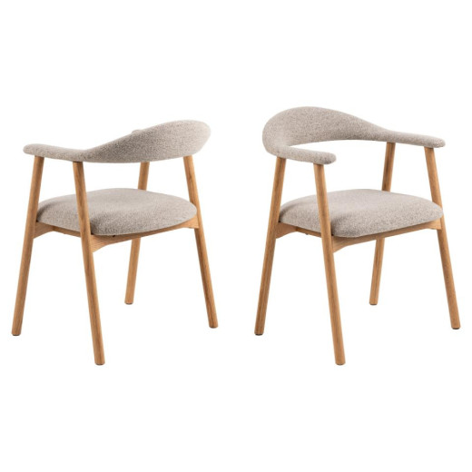 Pack de 2 sillas de comedor tapizada en color tostado, madera de color roble aceitado.