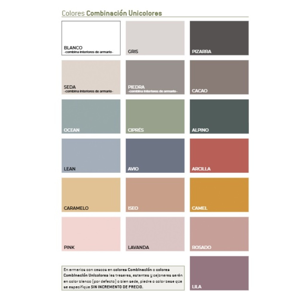 -Color del frente de los cajones: puedes escoger un color base o combinable.