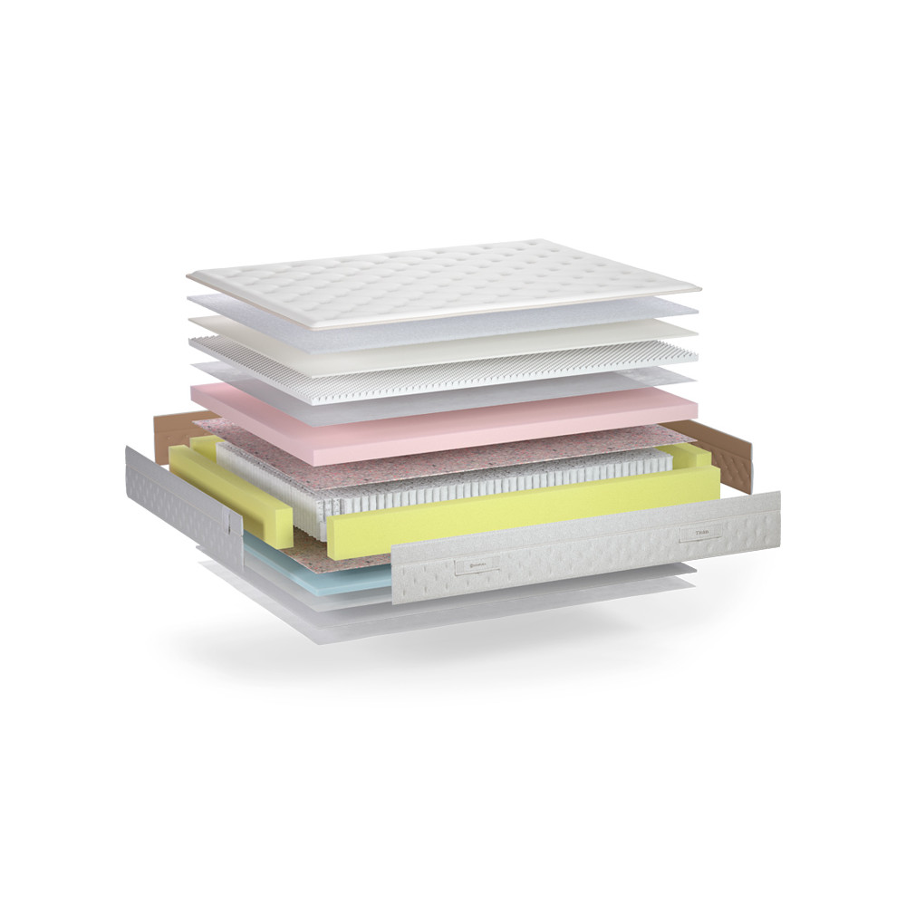 - Perfilconfort: Material que distribuye uniformemente la presión ejercitada por el cuerpo.