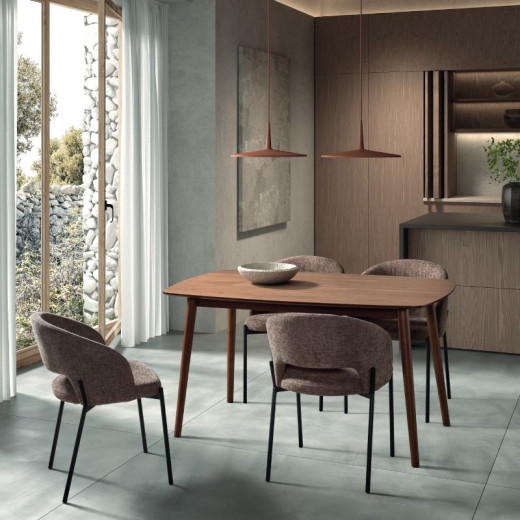 Silla tapizada con pata metálica color negro. Varios tapizados a elegir: beige, gris ó topo.