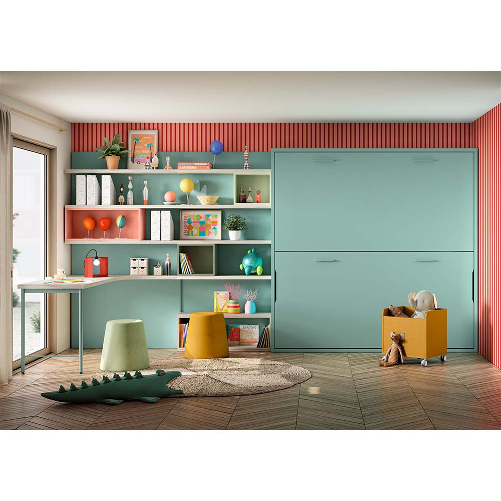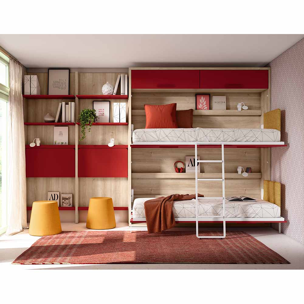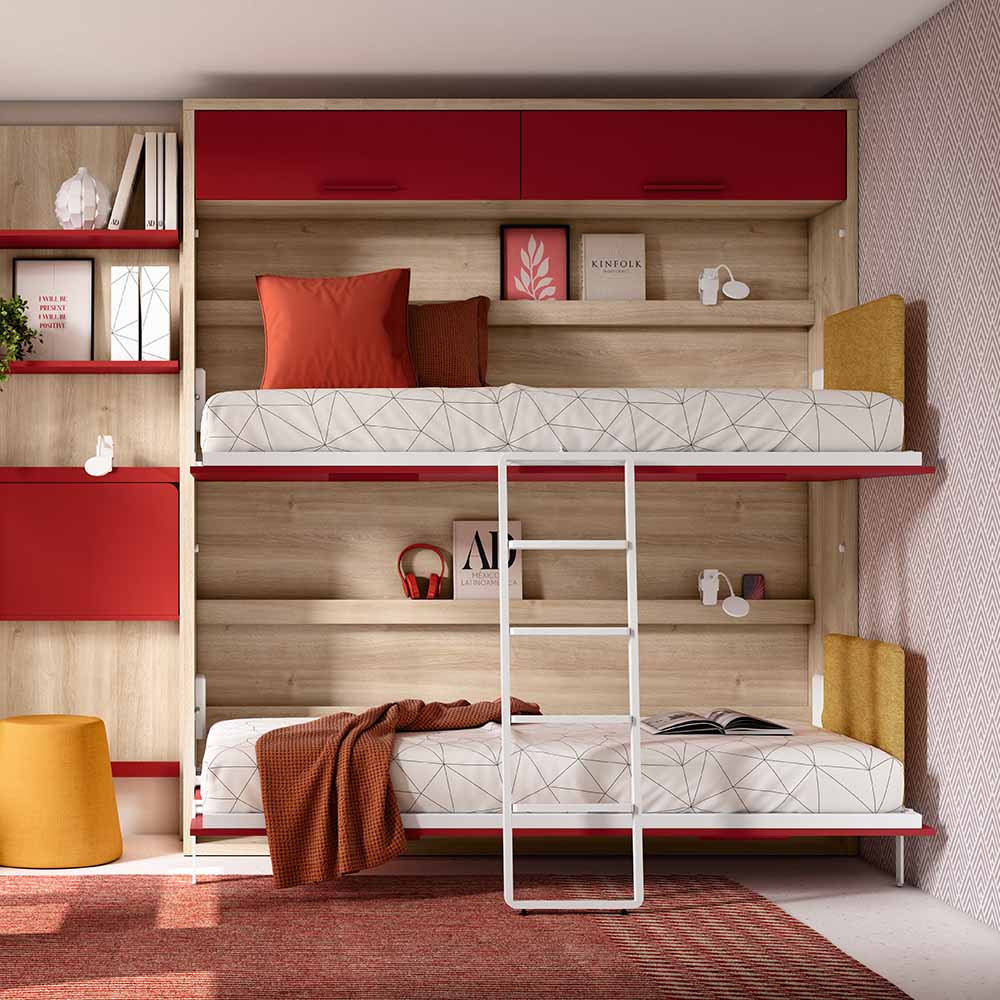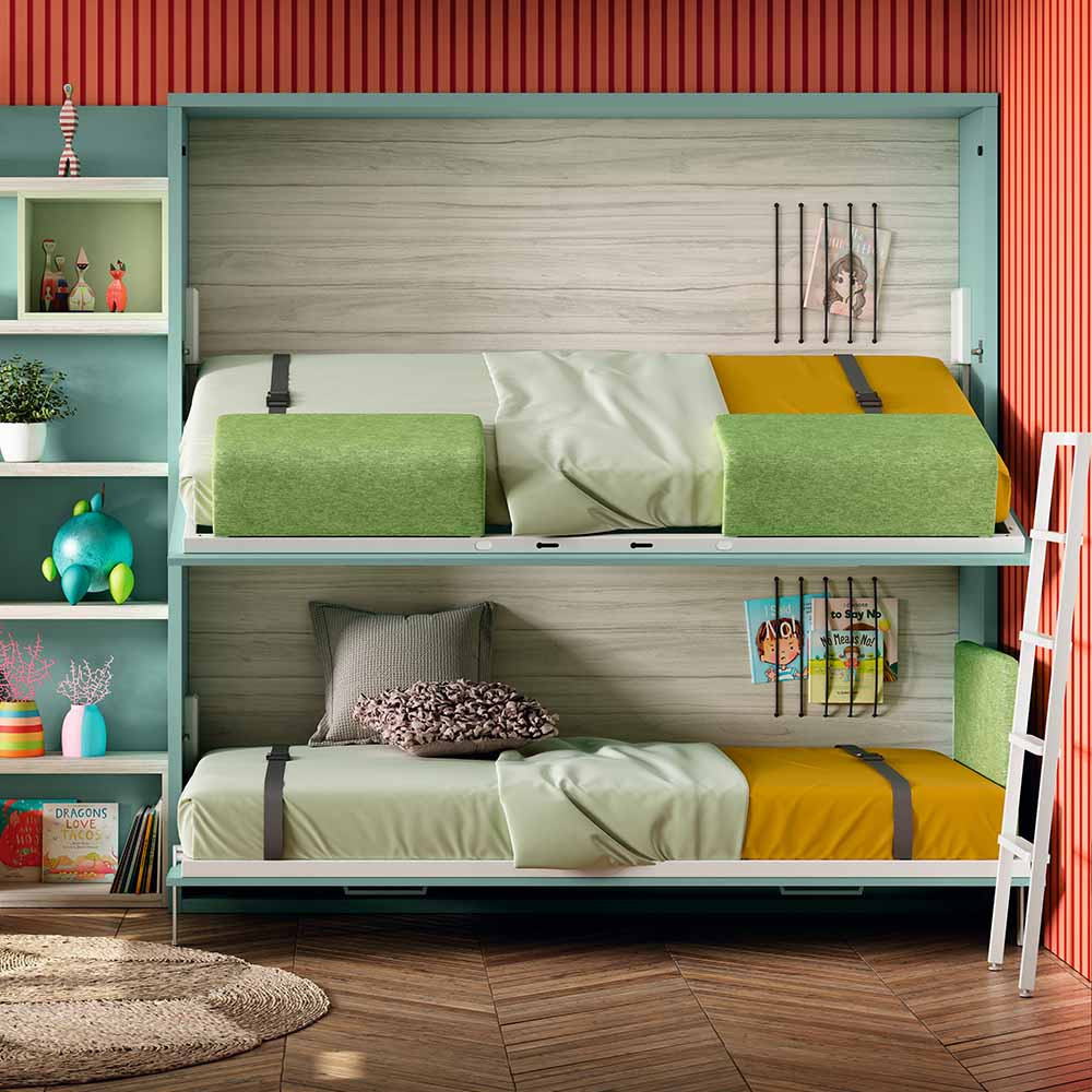 Con un sistema de dos camas abatibles en disposición horizontal, esta litera juvenil permite transformar cualquier ambiente con elegancia, sin renunciar al confort ni al estilo. Ideal para dormitorios con metros limitados o para habitaciones compartidas, LUANA se pliega discretamente contra la pared cuando no está en uso, liberando el espacio al instante y manteniendo la armonía visual del entorno.