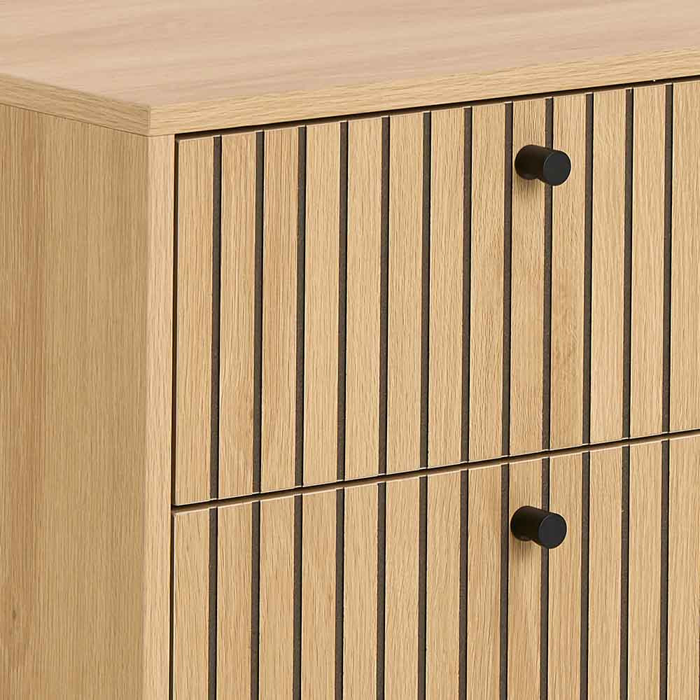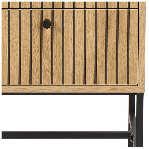 Madera con acabado roble natural. Estructura metálica en color negro mate.