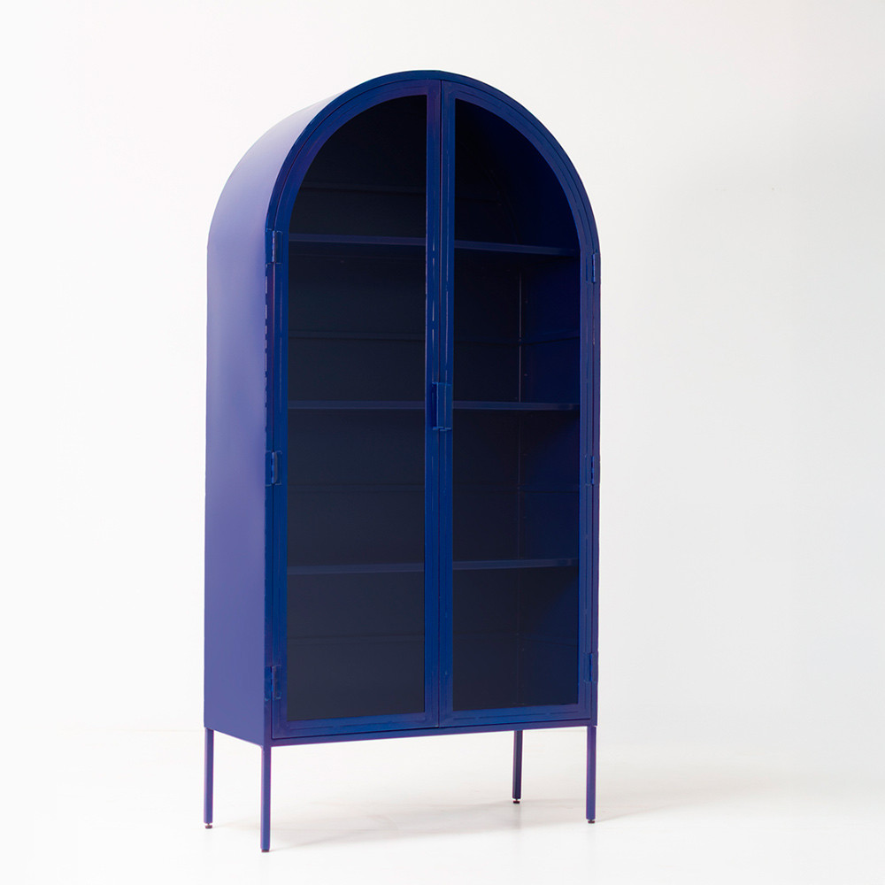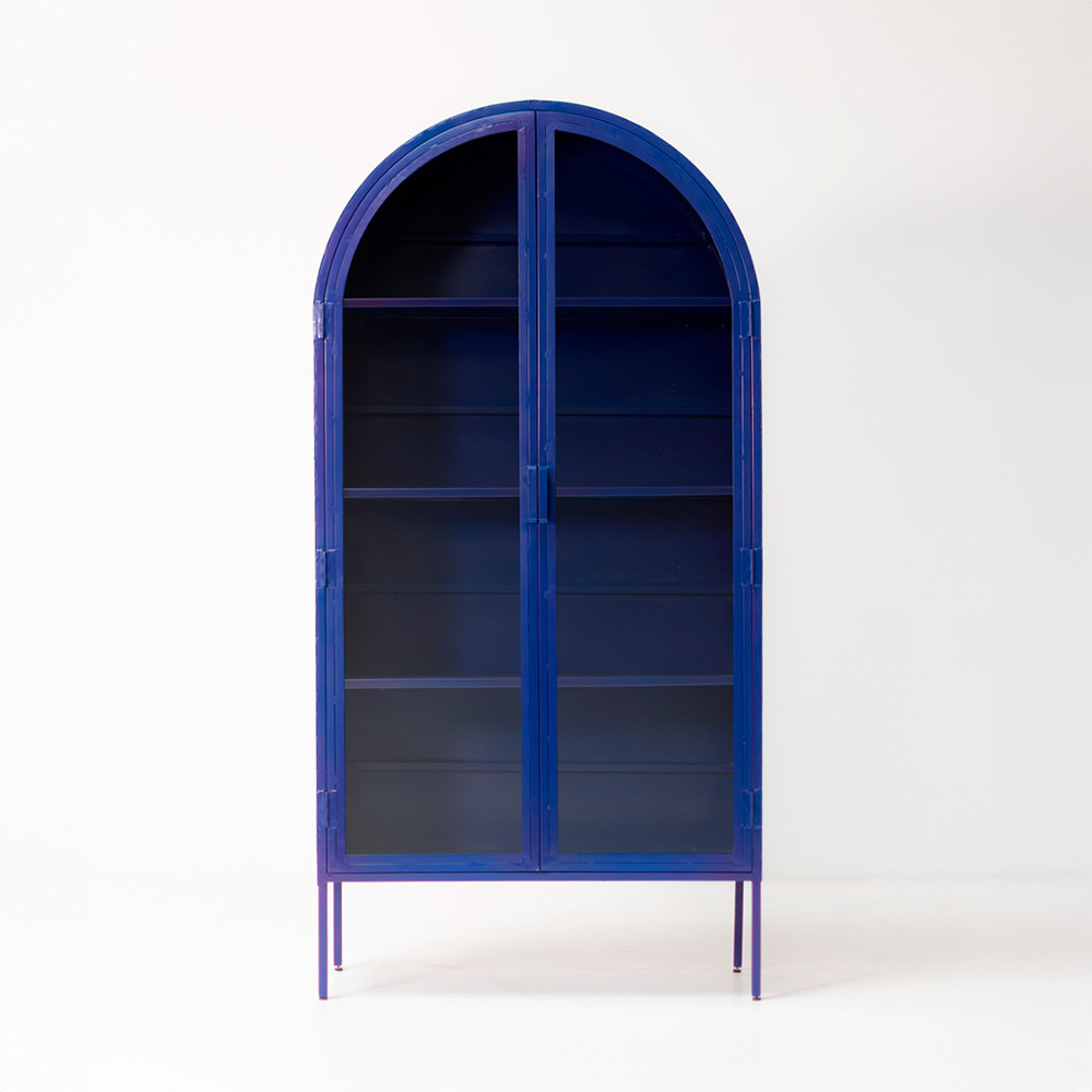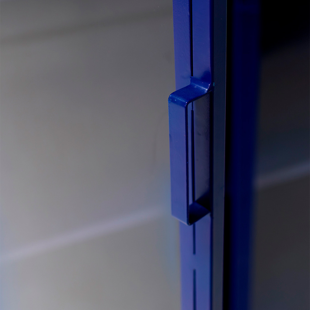 Vitrina metálica en azul o negro.