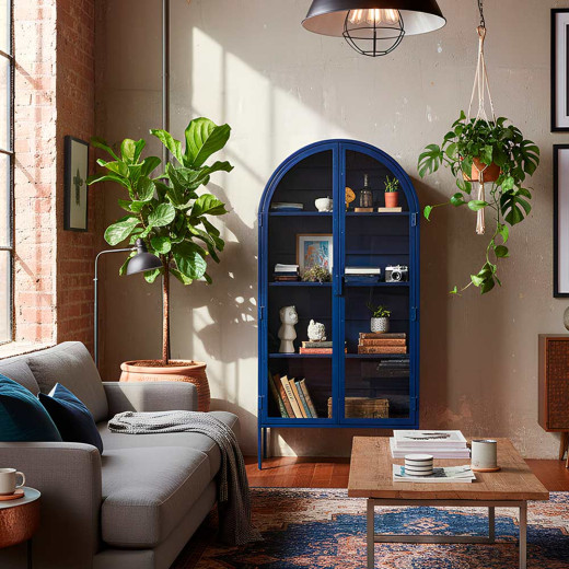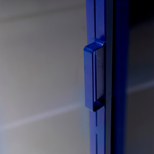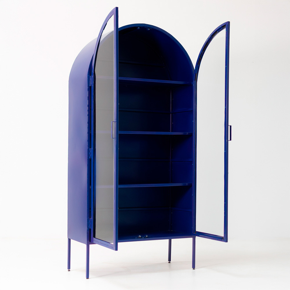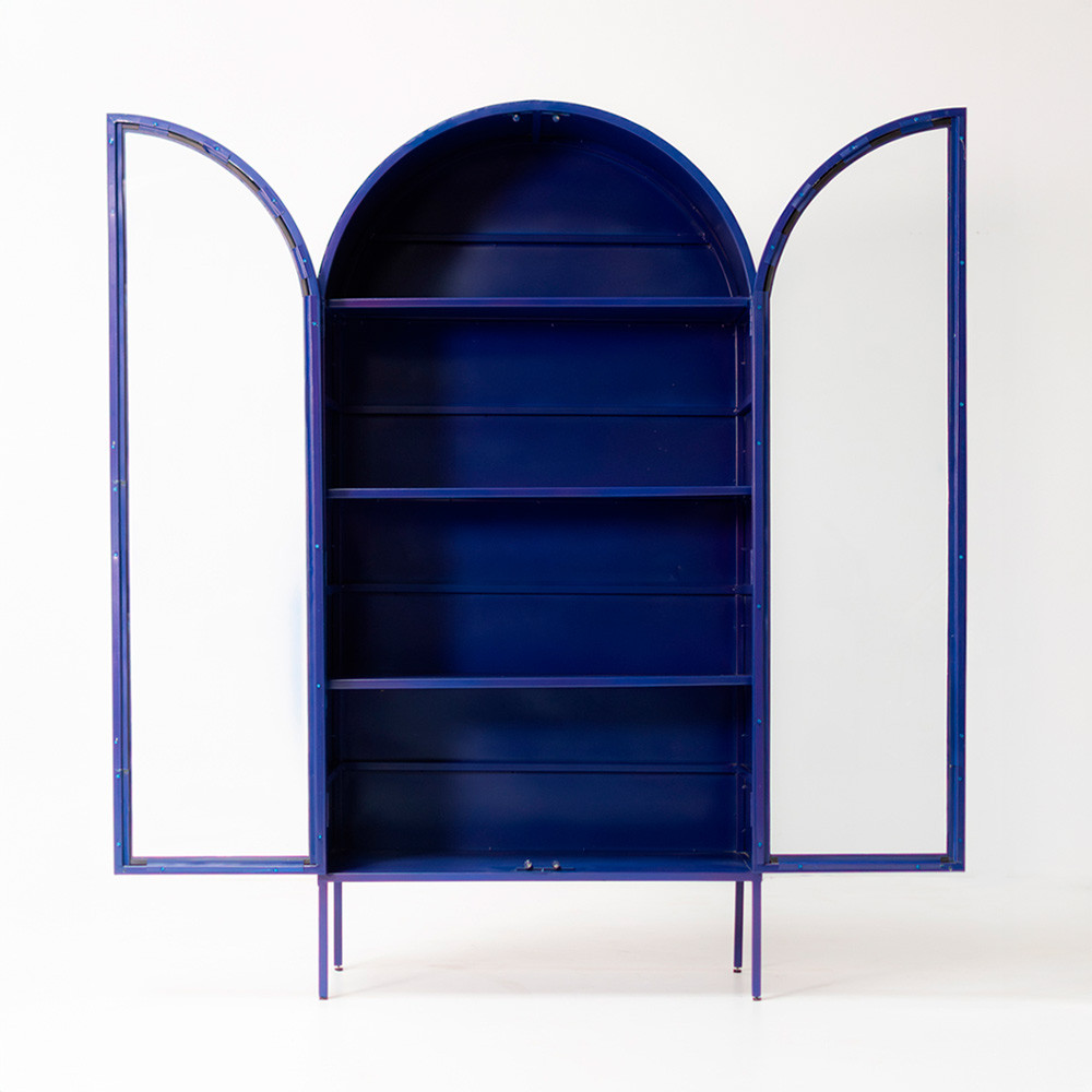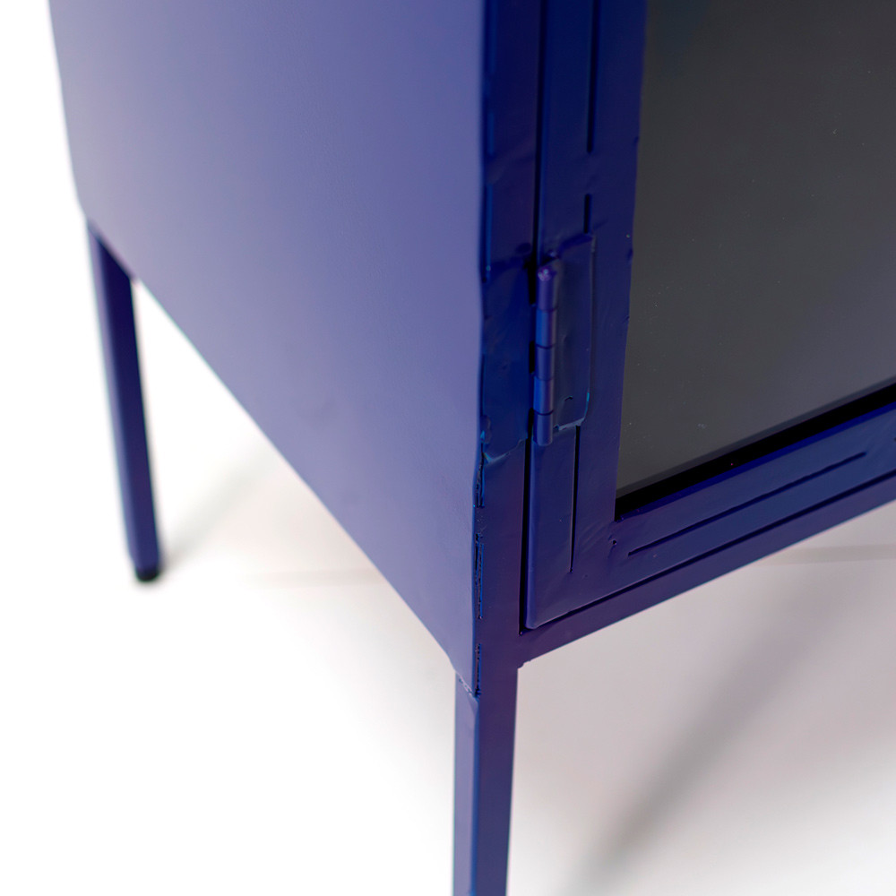 Vitrina metálica en azul o negro.