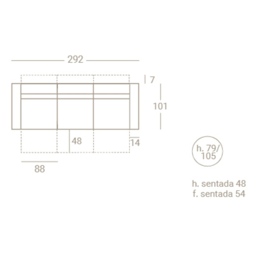 Medidas: 292 x 101/149 x 79/105 cm de alto. Altura del asiento: 48 cm
