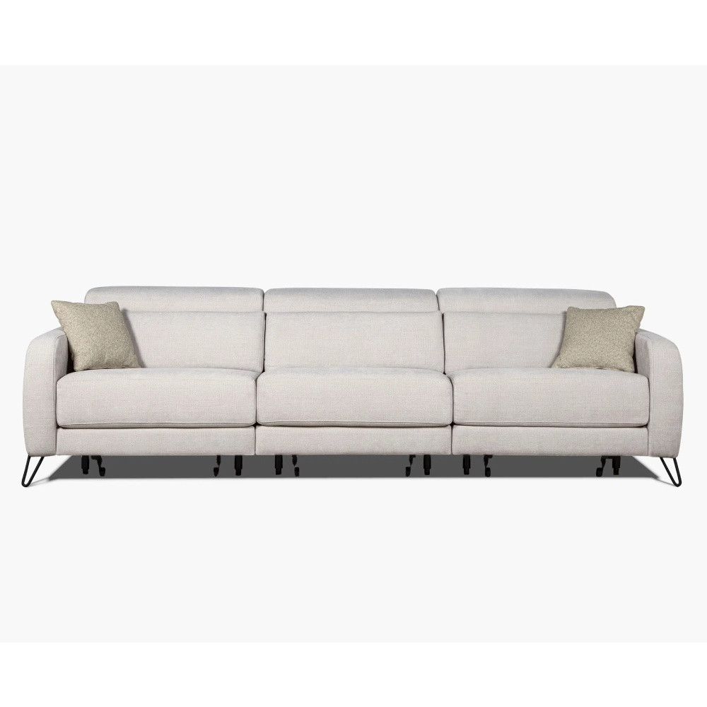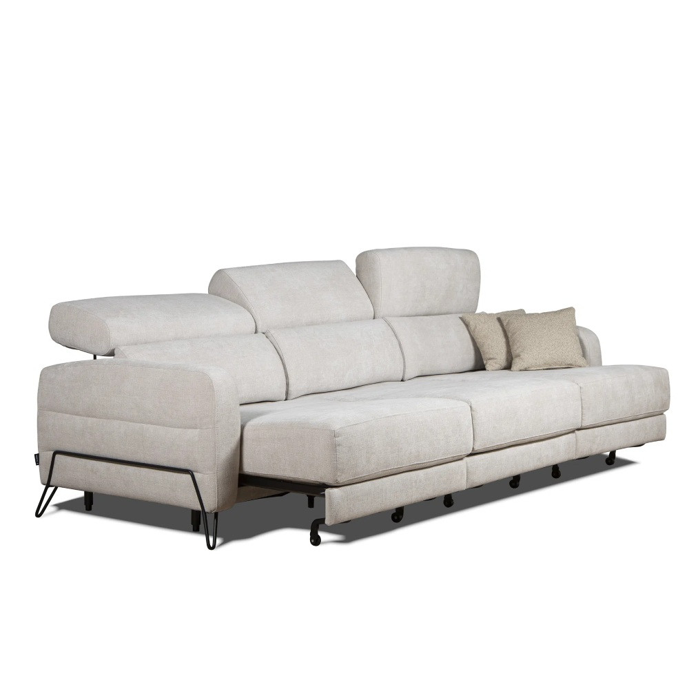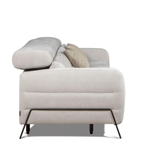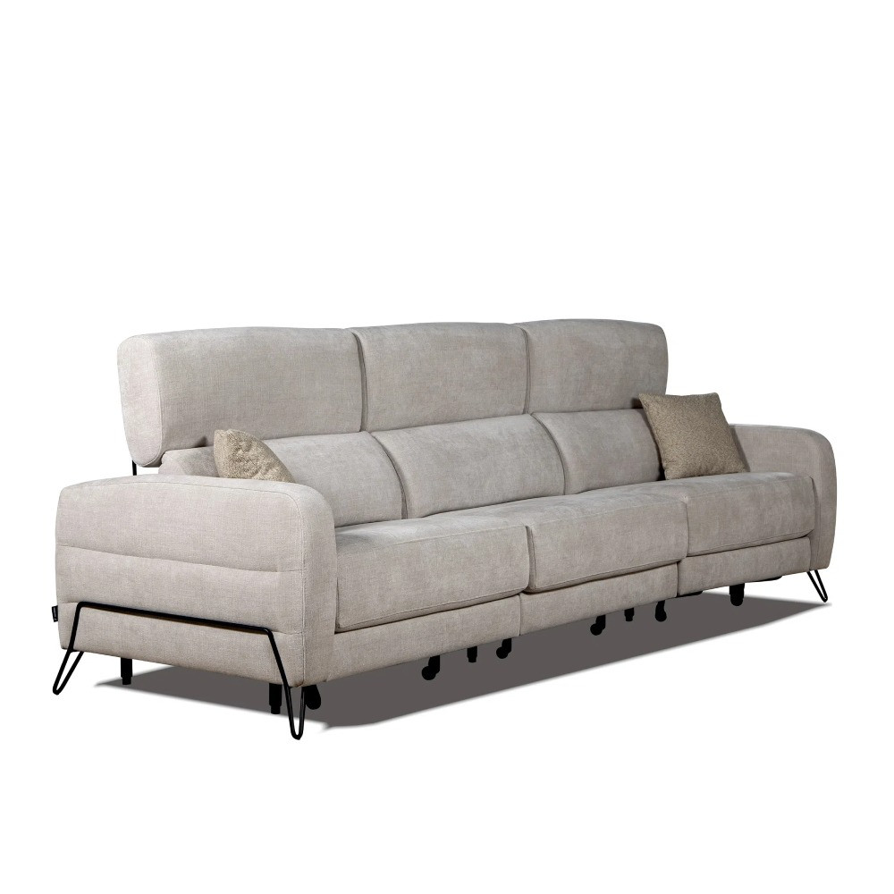 Sofá de 3 plazas con asientos deslizantes carro y cabezales reclinables. Incluye 2 cojines de decoración.