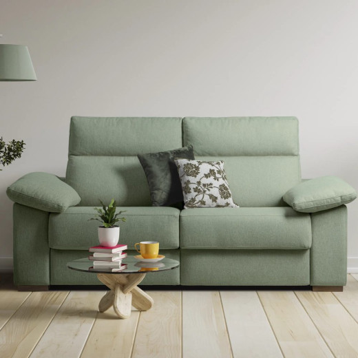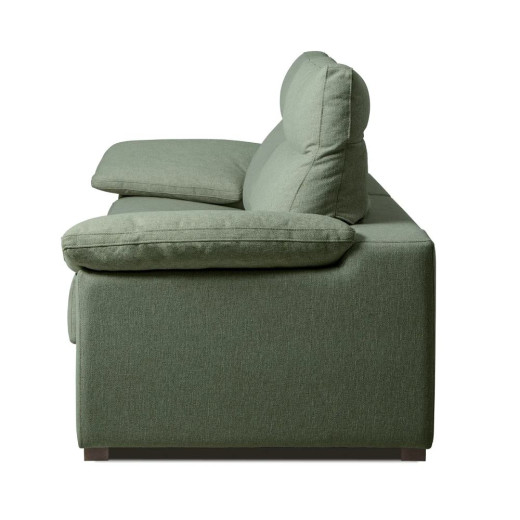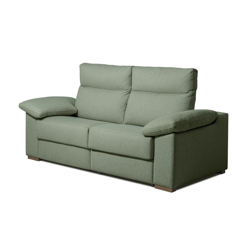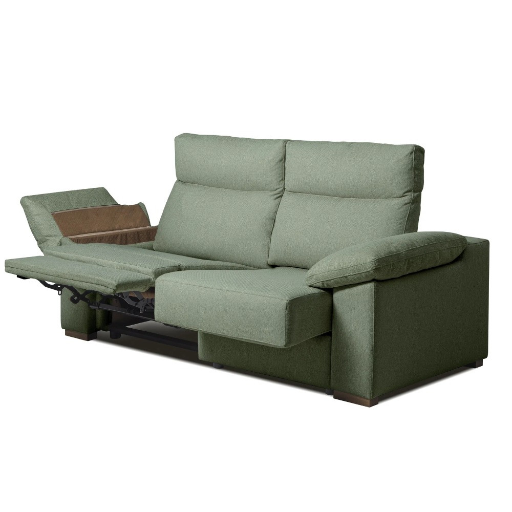 Sofá de 3 plazas con un módulo relax y otro módulo deslizante de bandeja. Con cabezales reclinables.