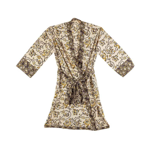 El Quimono RUAN es una prenda versátil que combina comodidad y diseño en un equilibrio perfecto. Confeccionado en tejido suave de algodón, destaca por su estampado inspirado en la naturaleza y sus tonos cálidos que aportan sofisticación y personalidad a cualquier look de descanso o relax.