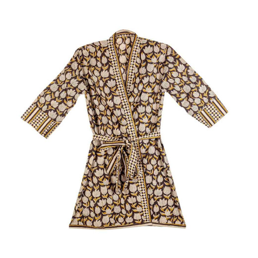 El Quimono DEAUVILLE es una prenda versátil que combina comodidad y diseño en un equilibrio perfecto. Confeccionado en tejido suave de algodón, destaca por su estampado inspirado en la naturaleza y sus tonos cálidos que aportan sofisticación y personalidad a cualquier look de descanso o relax.