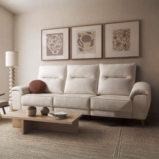 Sofá de 3 plazas con 3 módulos deslizantes manuales y 2 brazos con arcón.
