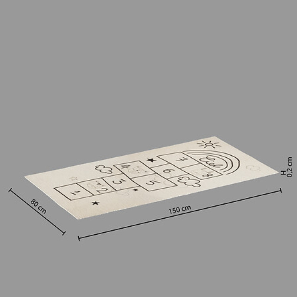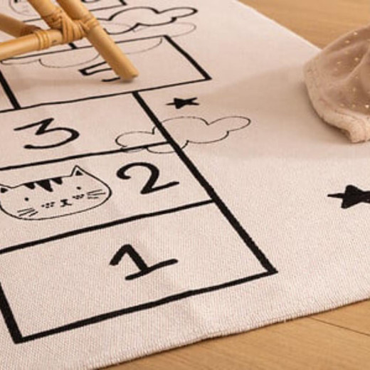 La Alfombra JENNY es mucho más que un accesorio decorativo: es un espacio de juego lleno de encanto. Con su diseño inspirado en el clásico juego de la rayuela, ilustrado con suaves dibujos de animalitos y elementos celestes, convierte cualquier habitación infantil en un lugar donde la imaginación cobra vida.