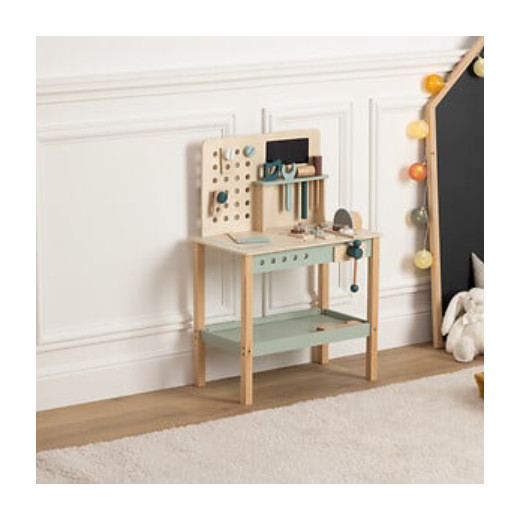 El Banco de Trabajo WOODY es el mueble perfecto para acompañar las primeras aventuras creativas de los más pequeños. Con un diseño inspirado en los bancos de carpintero tradicionales y una combinación de colores suaves y materiales naturales, esta pieza invita a explorar, construir y aprender a través del juego.