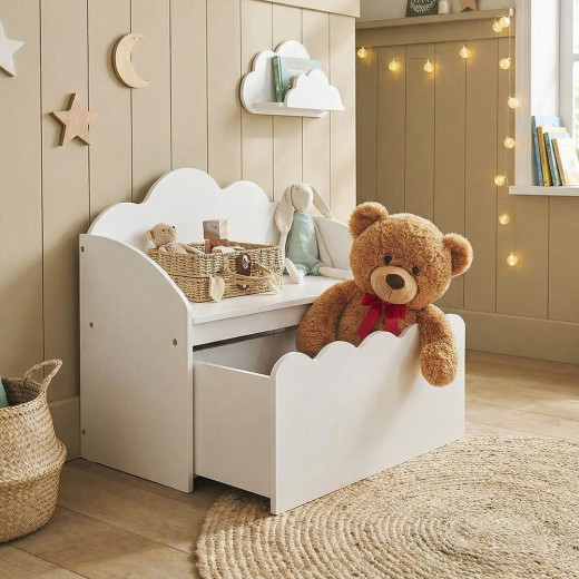 El Banco Baúl COCO es esa pieza que transforma cualquier habitación infantil en un espacio lleno de encanto. Su silueta de nubes, delicada y envolvente, aporta un toque poético que invita a soñar… y su interior espacioso mantiene cada juguete, mantita o tesoro en perfecto orden.