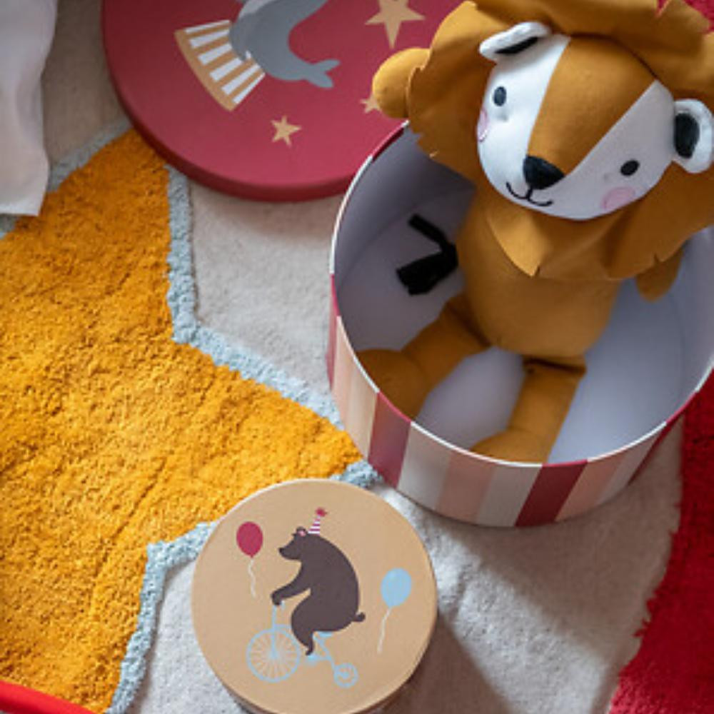 Este peluche león destaca por su expresión dulce, su melena estilizada y su vibrante tono mostaza, capaz de aportar alegría y personalidad a cualquier rincón. Su estética moderna y equilibrada lo convierte en una pieza decorativa ideal para habitaciones infantiles, salas de juego o espacios donde busques sumar calidez con un toque original.