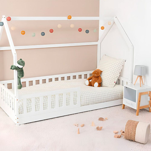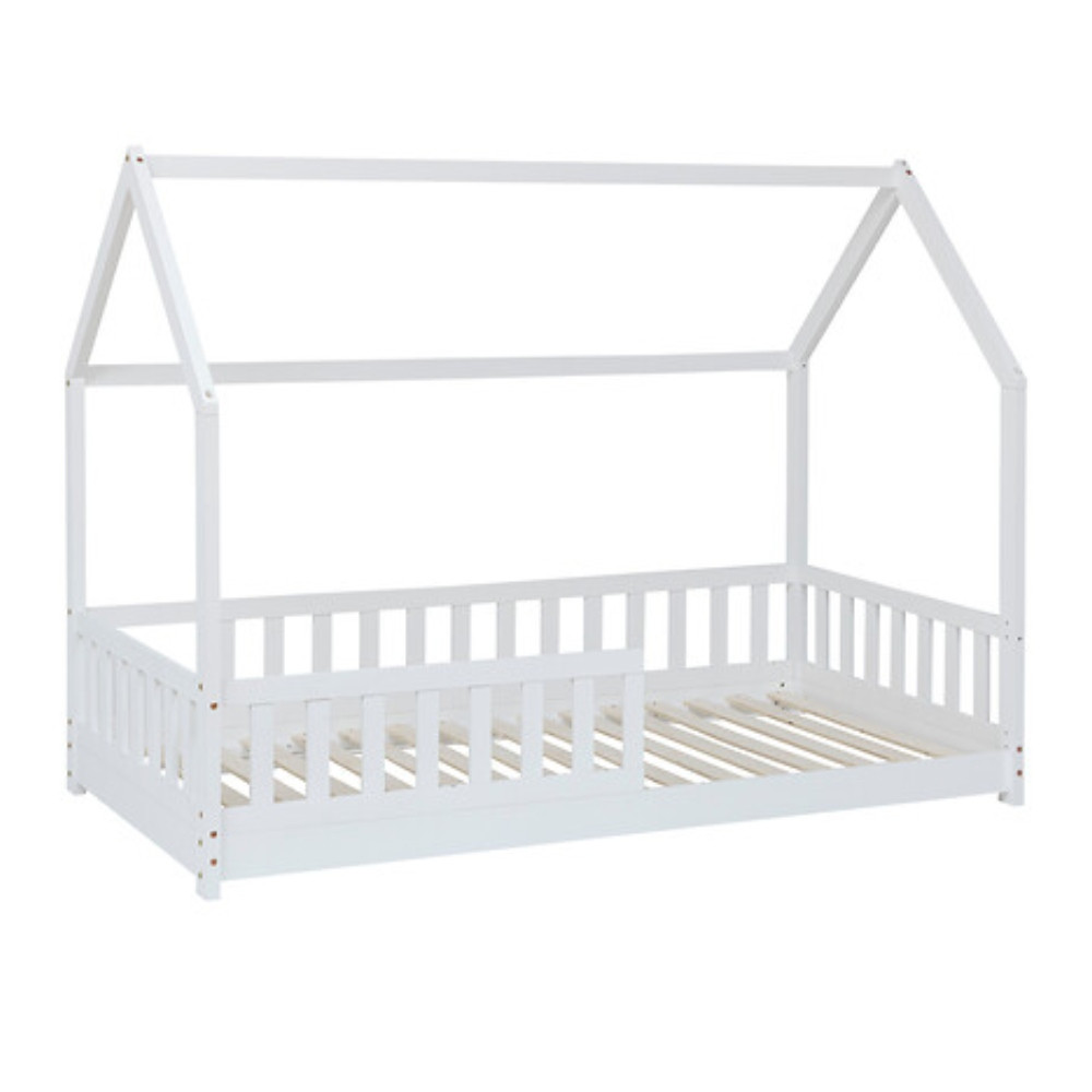Cama con cabaña infantil, color blanco.