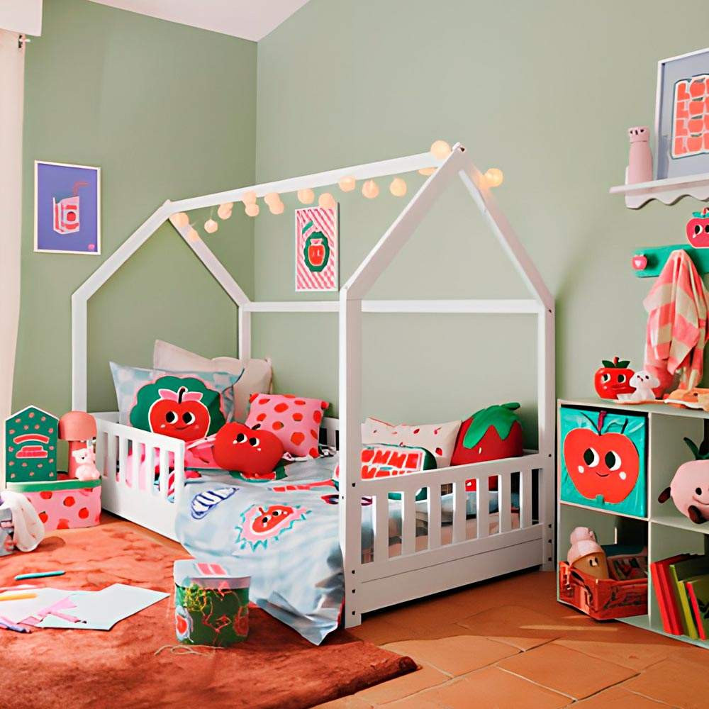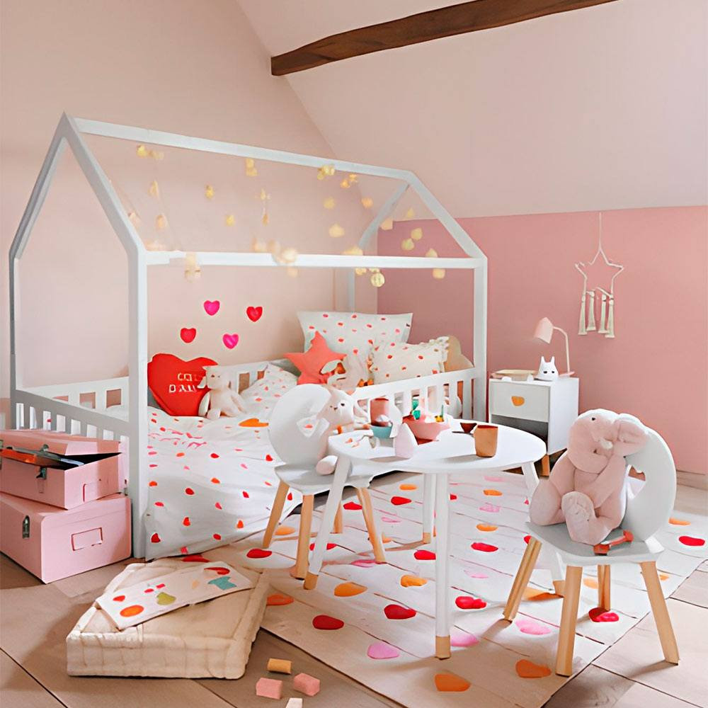 La Cama Infantil Cabaña transforma el dormitorio en un pequeño universo de aventuras. Su estructura en forma de casita, ligera y armoniosa, crea un ambiente acogedor donde la creatividad fluye de manera natural. El acabado en blanco aporta luminosidad, calma y un estilo atemporal que combina con cualquier decoración infantil.