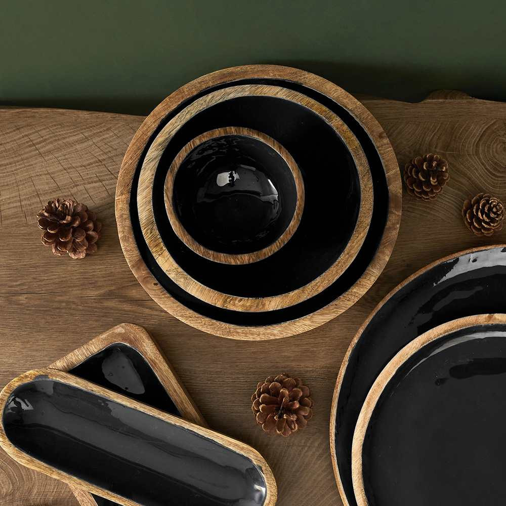 Bol de madera de mango, color negro y madera.