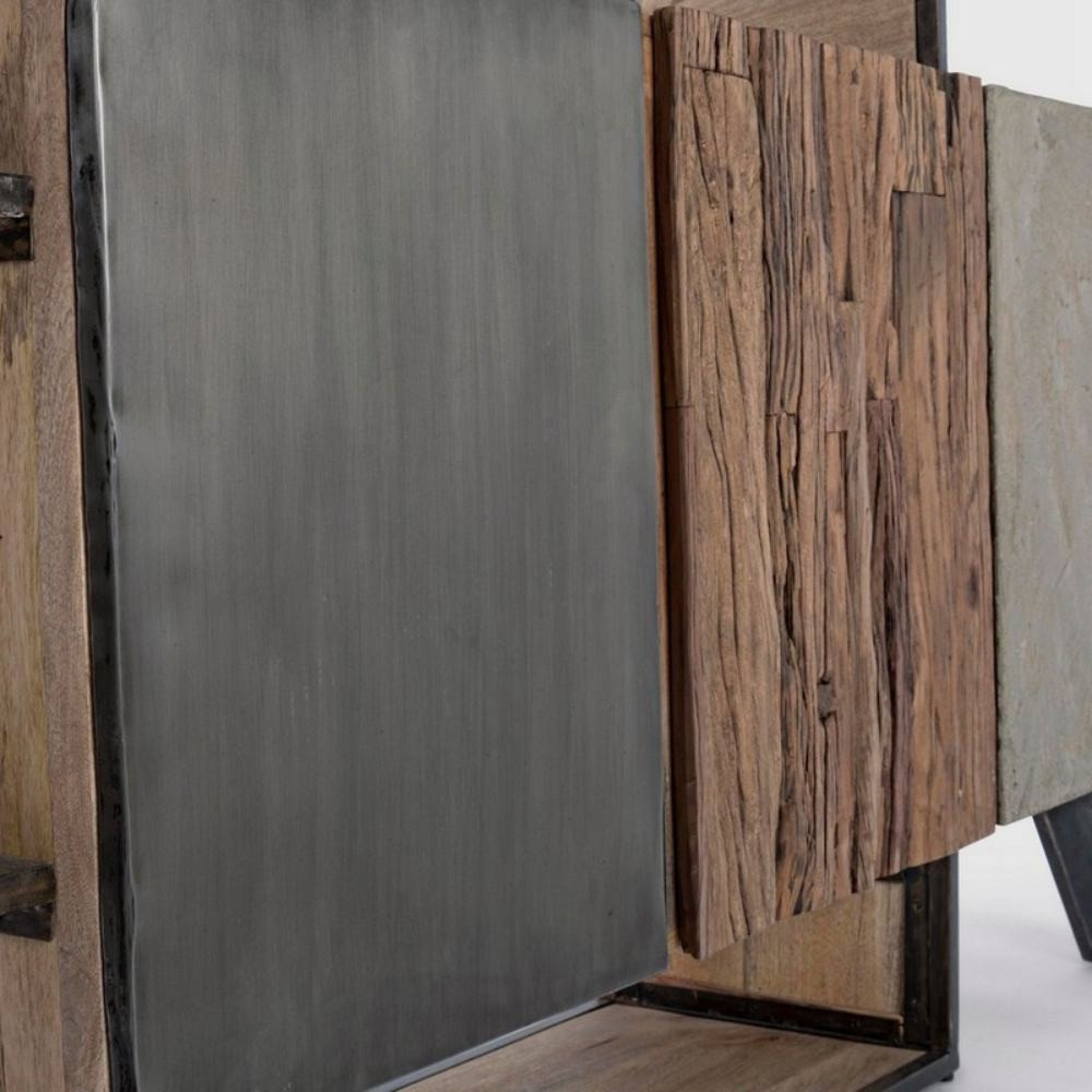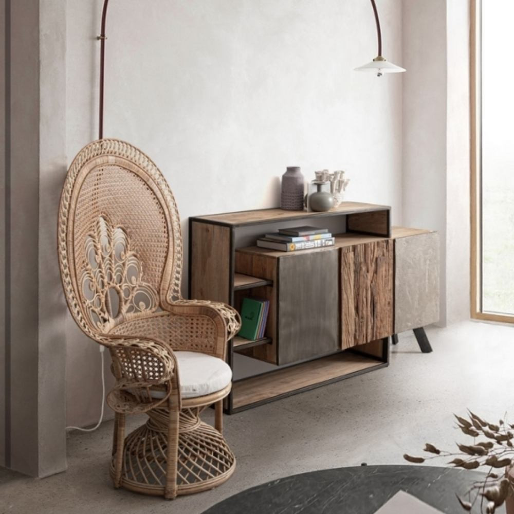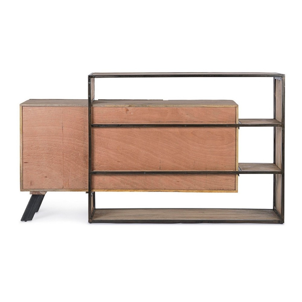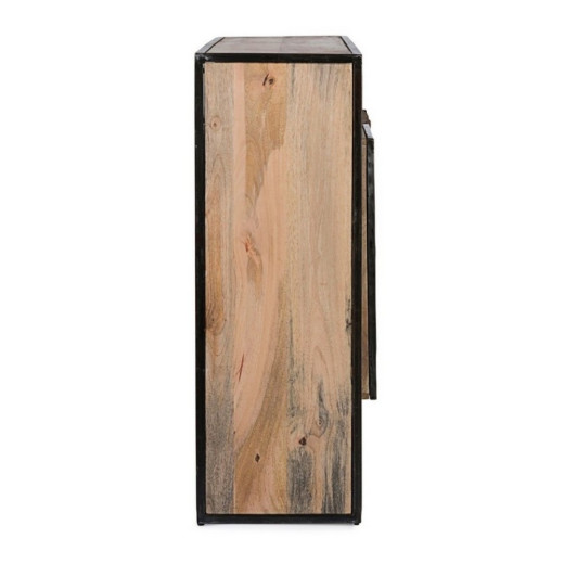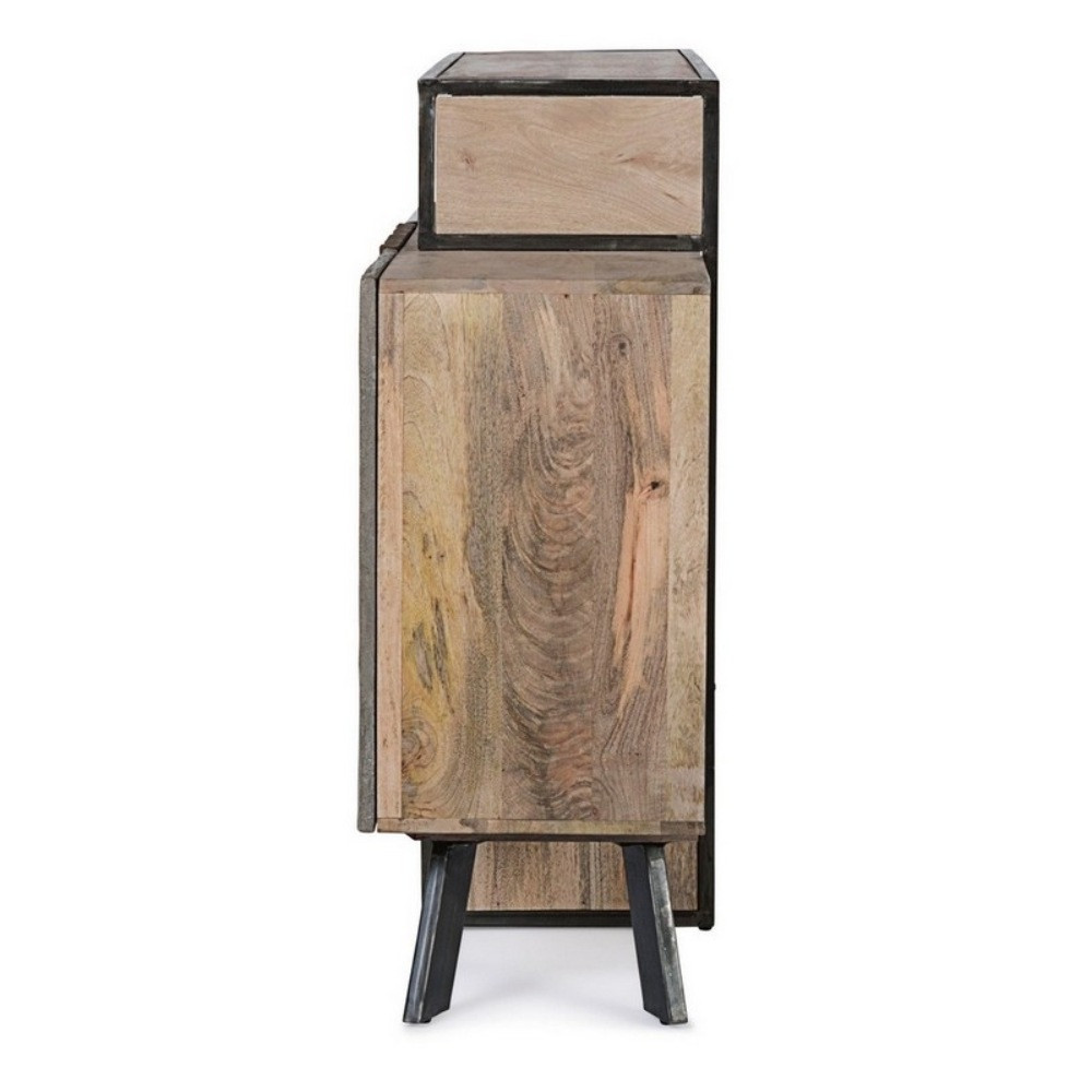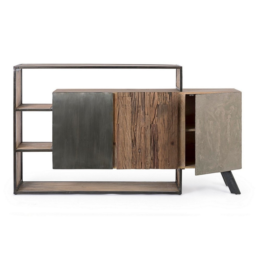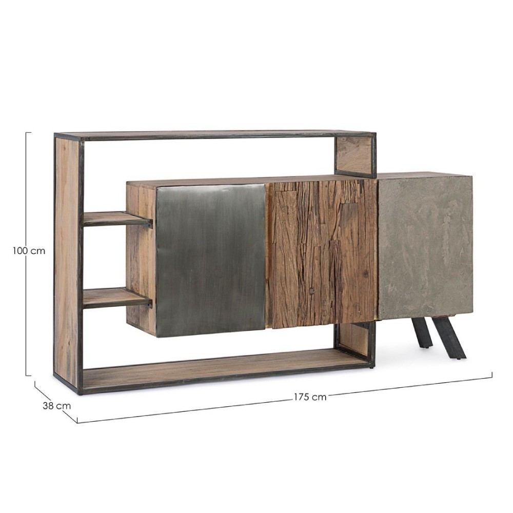 Este aparador de diseño industrial es una pieza con fuerte presencia estética, pensada para hogares que buscan mobiliario con personalidad y autenticidad. Combina madera natural con textura marcada, metal envejecido y una estructura geométrica abierta, logrando un equilibrio perfecto entre robustez y sofisticación.