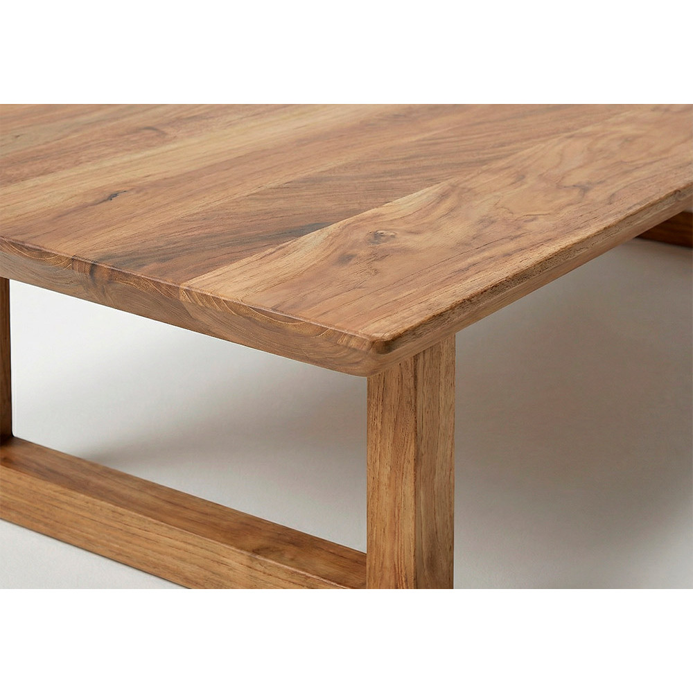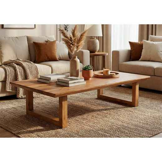 Esta mesa de centro es una pieza que habla de buen gusto y calma visual. Su silueta baja y alargada, junto con la madera natural de vetas marcadas, aporta una presencia serena que encaja con interiores contemporáneos, minimalistas o de inspiración japandi.