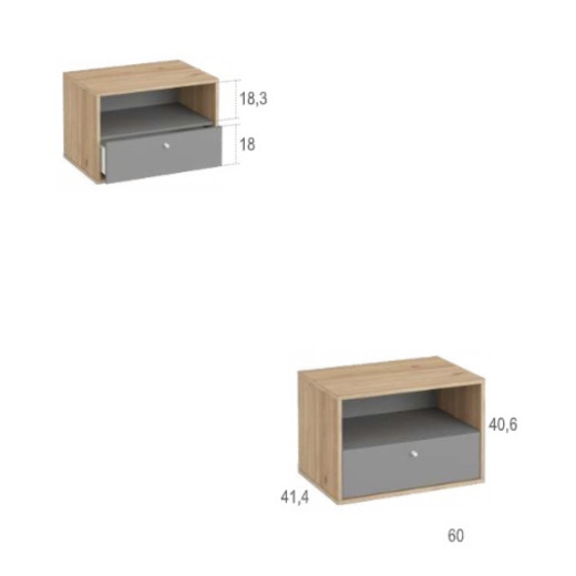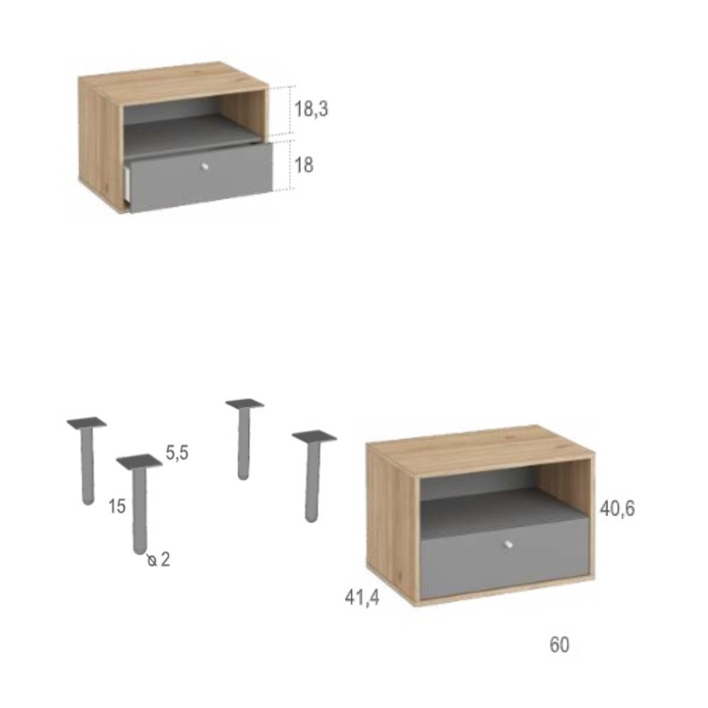 - Mesilla 1 cajón 1 hueco con patas: 60 x 41,1 x 55,6 cm de alto.