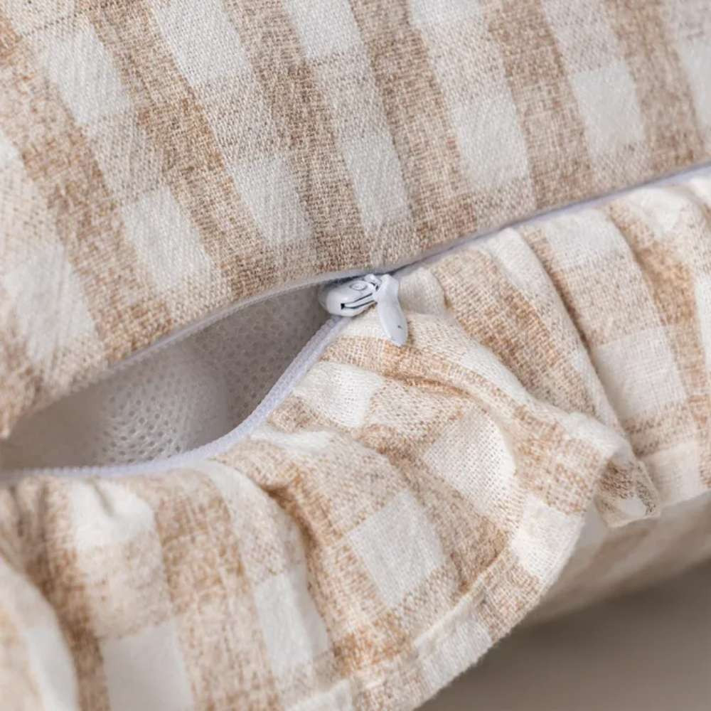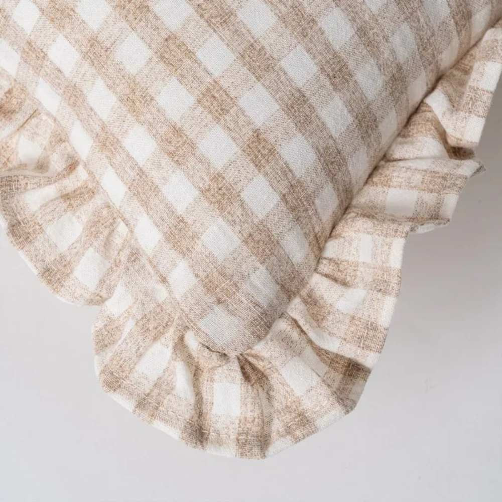 Cojín Vichy con Volante Beige: un guiño clásico, un acabado muy actual