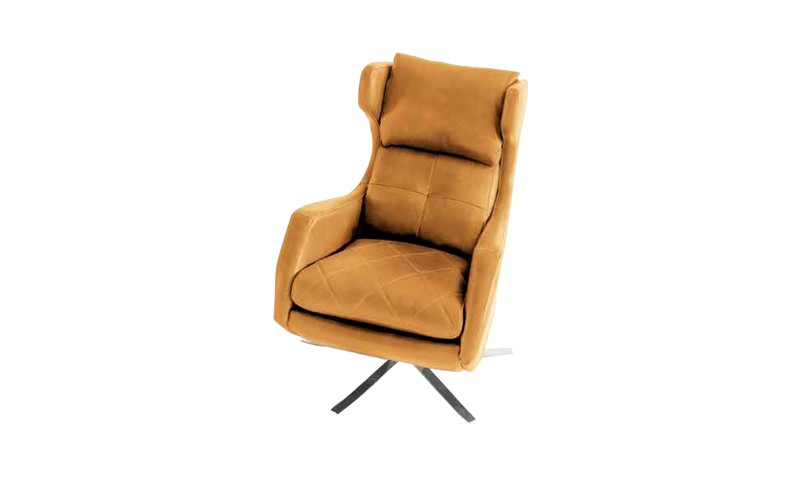 Sillón orejero giratorio de estilo moderno tapizado en tela color mostaza. Sillón cómodo que, además, vestirá tu salón moderno y le dará el toque de color que necesitas. Medidas: 75 X 85 X 100 cm
