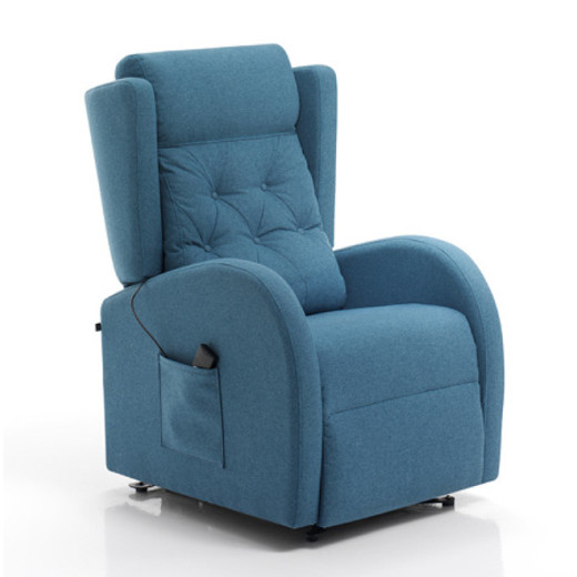 Sillón relax con sistema de elevación power lift desplazable con ruedas. Mecanismo de dos motores elevadores y respaldo reversible para zona lumbar o zona cervical. Ancho reducido especial para salvar el paso por puertas. Medidas: 66 x 89/154 x 115 cm alto.