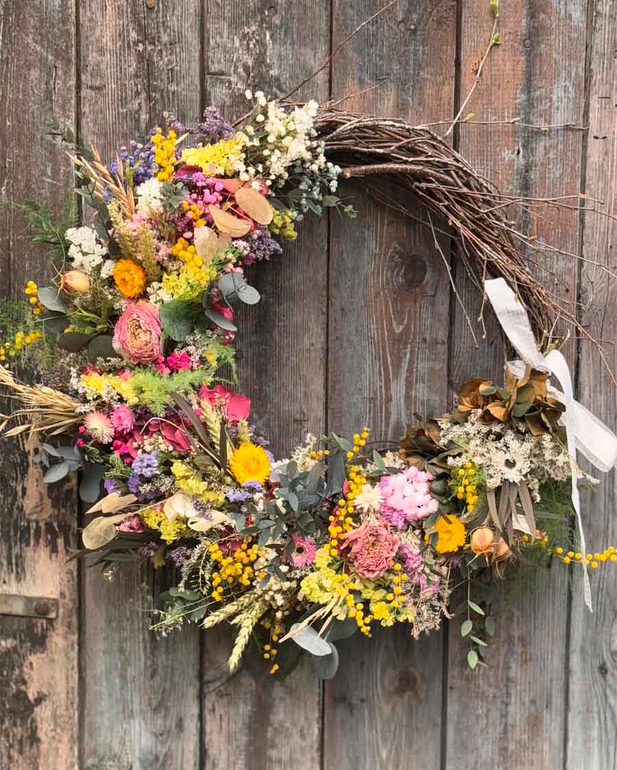 Taller Corona botánica de primavera con elementos naturales, secos y preservados.