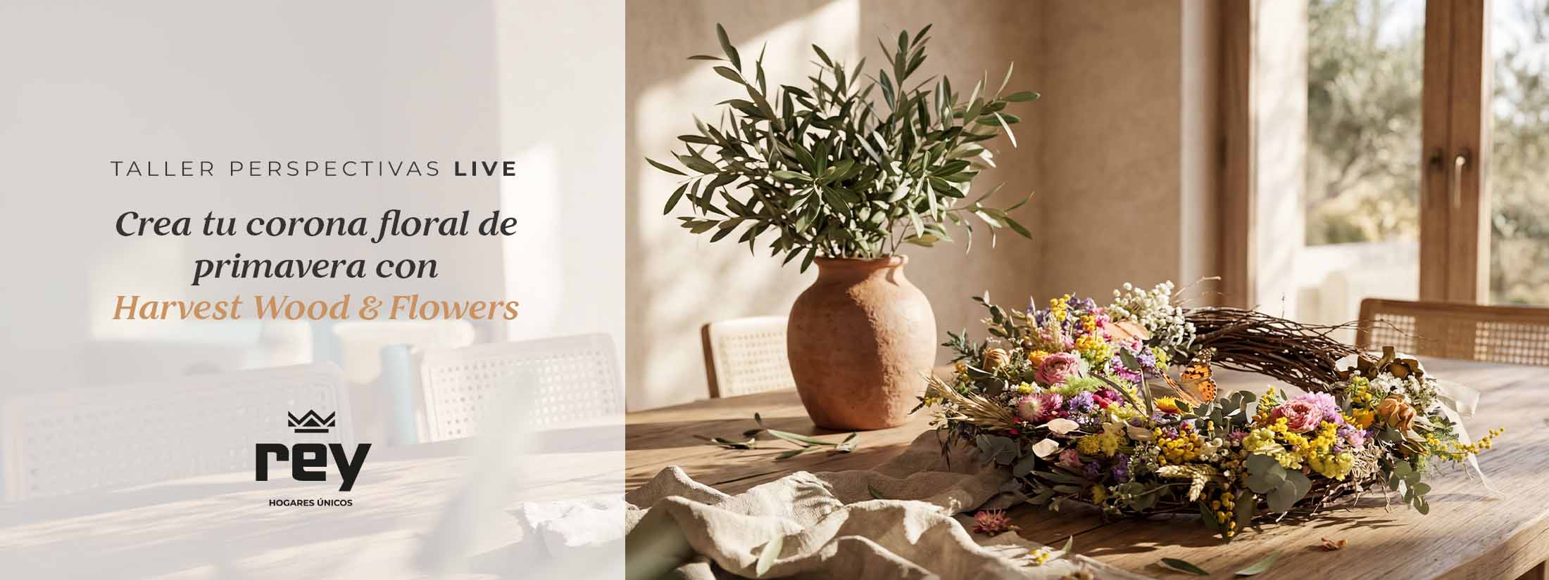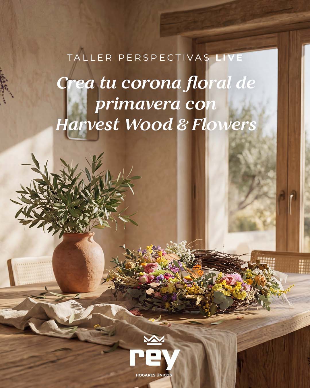 De la mano de Roberto, de Harvest, trabajarás con flores y materiales naturales para crear tu propia semicorona de primavera. Una pieza única, hecha por ti, que no solo decora… habla de ti.