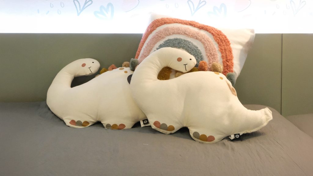- Cojines infantiles con formas divertidas que invitan al descanso.