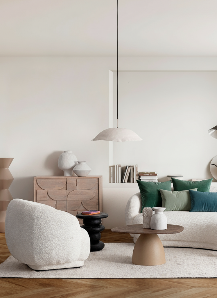- Refuerza con detalles textiles cálidos y accesorios en cerámica o piedra.