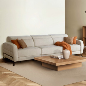 Sofá de 3 plazas calidad premium. Respaldos reclinables. Tapizado en color natural con patas metálicas. Medidas: 222 x 102 x 80/102 cm. alto.